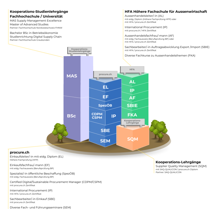 Fachkräfte, die eine Weiterbildung mit eidgenössischem Abschluss vorweisen, sind in Unternehmen gesucht und geschätzt. Mit unseren stufengerechten und praxisorientierten Lehrgängen der höheren Berufsbildung geben Sie Ihrer Karriere im Einkauf den nötigen Schub.