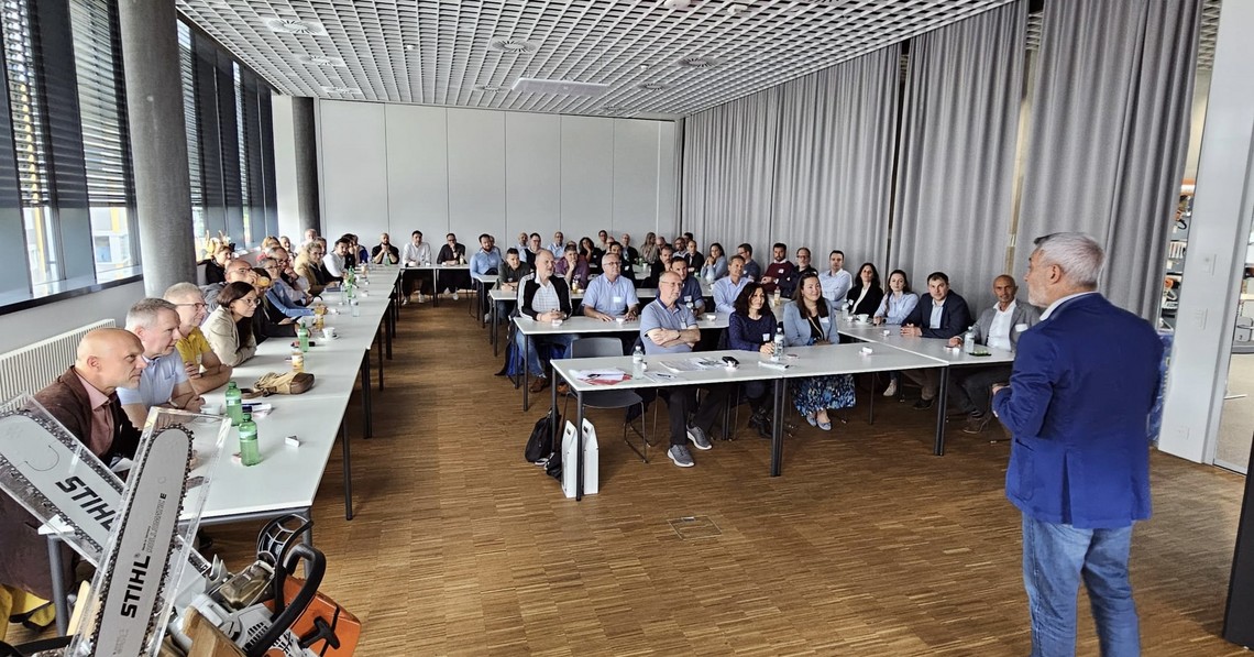 Nach der Einführung folgte ein beeindruckender Rundgang durch die Produktionsstätte. Hier konnten wir hautnah miterleben, wie die legendären STIHL Kettensägen und Heckenscherenmesser gefertigt werden. Die modernsten Fertigungstechnologien sowie das Engagement der Mitarbeitenden zu sehen, hinterliessen bei allen Teilnehmern einen bleibenden Eindruck. Ein weiteres Highlight des Tages war der Vortrag von Peter Weibel. Er führte uns tief in die komplexen Herausforderungen des Einkaufs und der Supply Chain bei STIHL ein. Dabei wurden die strategischen Ansätze und innovativen Lösungen beleuchtet, mit denen das Unternehmen seine Lieferketten effizient und zuverlässig gestaltet. Die Einblicke in die Prozesse und die kontinuierlichen Verbesserungen waren äusserst lehrreich.