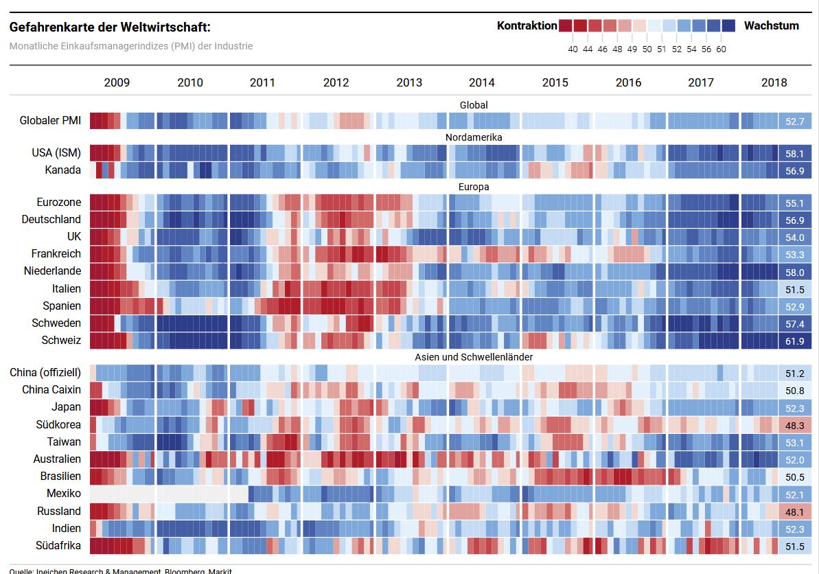 Die Weltwirtschaft befindet sich weiterhin auf Wachstumskurs, aber der Handelskonflikt dämpft den Optimismus. In Amerika und der Schweiz brummt die Industrie, in China lässt die Dynamik nach.