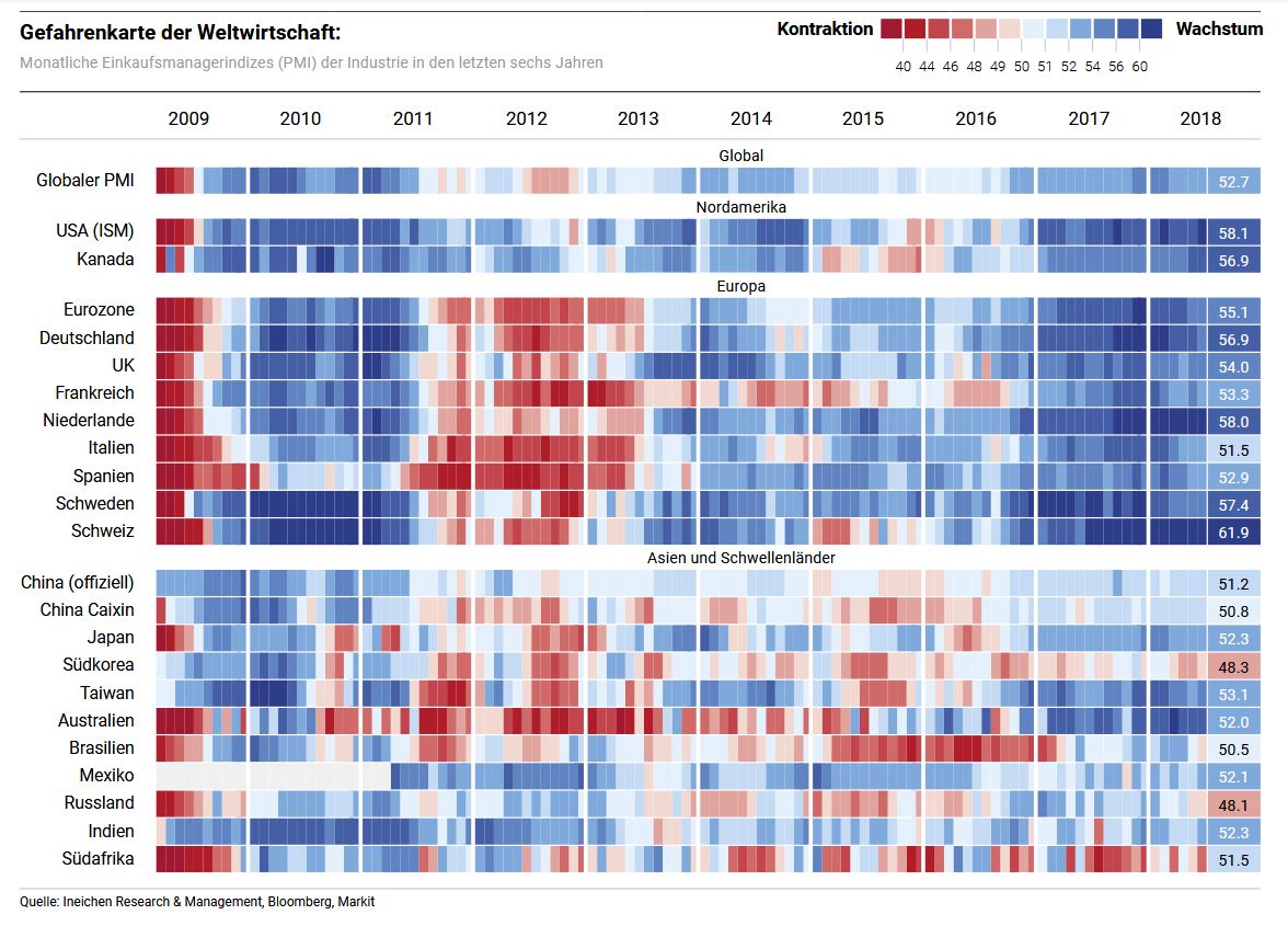 Gemäss den Frühindikatoren der Industrie beschleunigt sich das Wachstum weltweit. In den USA droht eine Überhitzung.